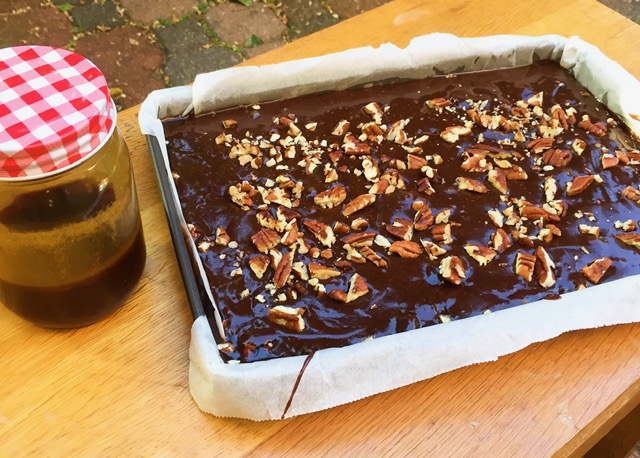 Sprinkle over the remaining pecans and pop your tin into the oven for around 20 minutes.